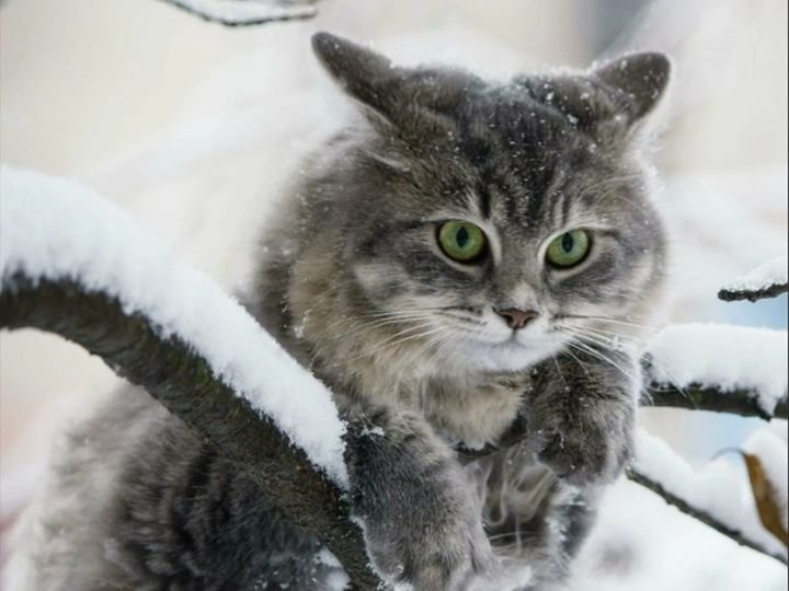 А в это время человек, сидя дома смотрел на первый в этом году снег, вспоминал былое и грустил. Его вдруг захлестнуло непреодолимое желание почувствовать на лице холодные льдинки, и повинуясь необъяснимому порыву, он вышел на улицу. Кошке оставалось совсем немного до заветного места, когда порыв ветра пошатнул дерево, и она, не удержавшись на скользкой ветке полетела вниз.