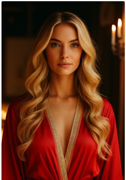 Из кухни вышла Яна, в коротком халате, с распущенными обесцвеченными волосами. В руках она держала два бокала с шампанским.