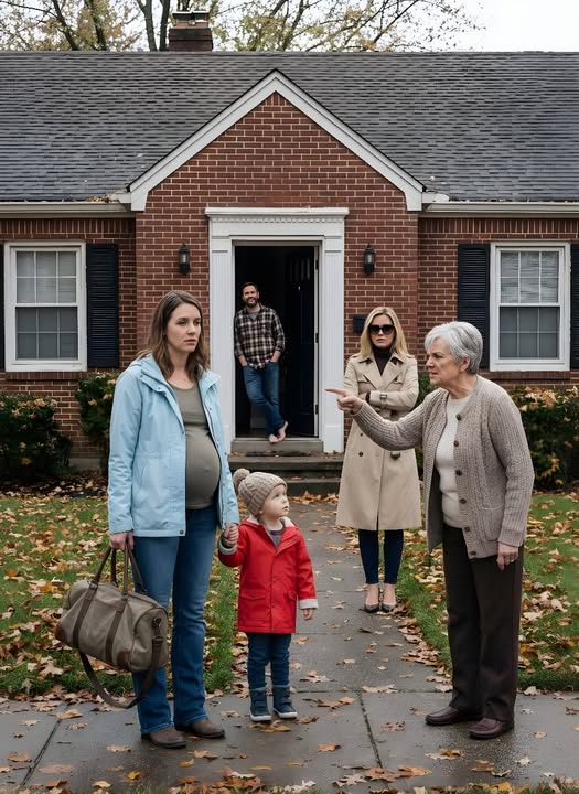 Я стояла на крыльце, прижимая ладонь к округлившемуся животу под пальто. Второй рукой держала сына — трёхлетний Тайлер дрожал и вцепился в мои пальцы так крепко, будто это было единственное, что удерживало его от падения в неизвестность.