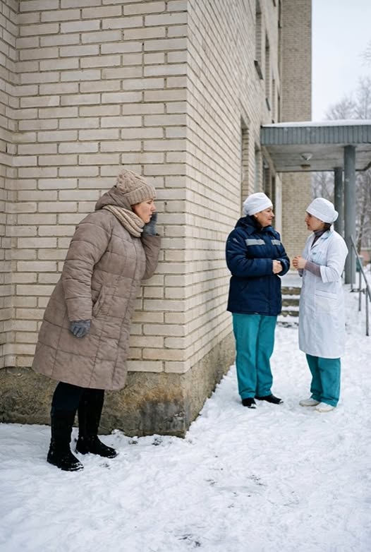Две санитарки стояли у угла здания, не замечая её. Они разговаривали тихо, но каждое слово было слышно отчётливо.