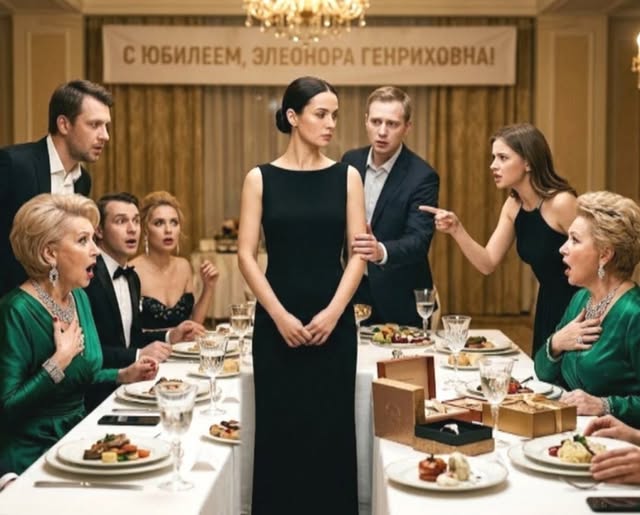 Ресторан сверкал хрусталем и позолотой. Элеонора Генриховна, затянутая в изумрудное платье, восседала во главе стола, как императрица на приеме. Гости произносили длинные тосты, вручали бархатные коробочки, конверты толщиной с кирпич и огромные букеты роз.