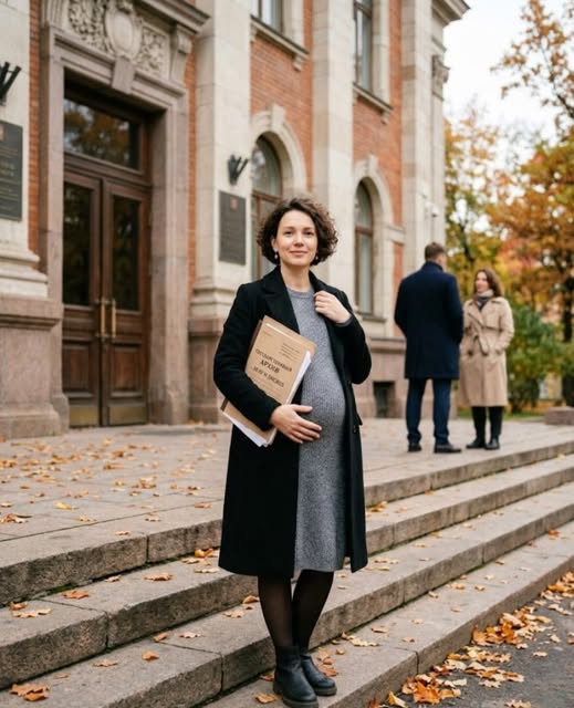 Она стояла на мокрых ступенях суда, держала ладонь на животе и смотрела, как вода стекает по перилам.